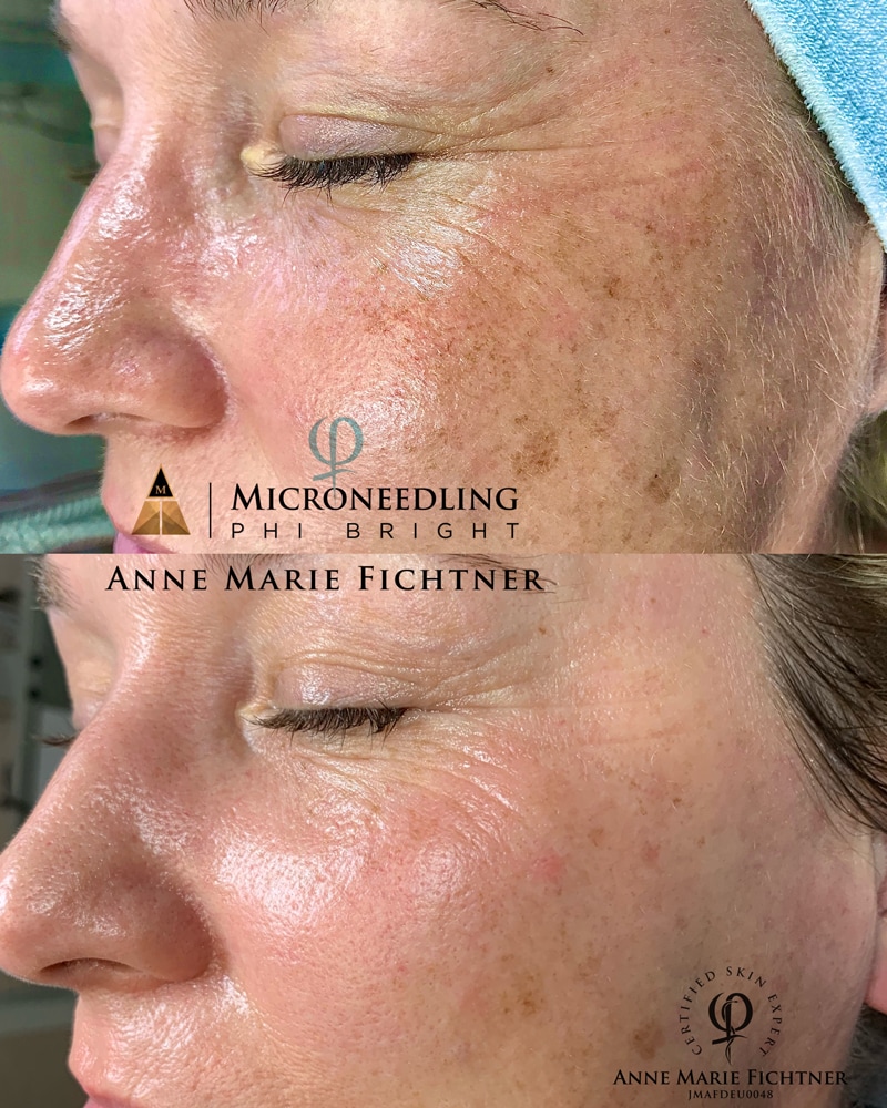 Microneedling ist eine sehr einfache, sichere, effiziente und minimalinvasive therapeutische Technik. Ursprünglich wurde es zur Verjüngung der Haut angewendet, heute wird es jedoch für eine Vielzahl von Indikationen verwendet, darunter Narben, vergrößerte Poren, Aknenarben, Dehnungsstreifen, Alopezie usw. Durch eine kontrollierte Hautverletzung mit minimaler Schädigung der Epidermis, werden unsichtbare Mikrokanäle in der Oberflächenschicht erzeugt. Die Erzeugung von Mikrokanälen hat mehrere Auswirkungen: Sie stimuliert die Kollagenproduktion in der Haut und ermöglicht die transepidermale Anwendung der Produkte direkt in die Dermis. Dies alles verursacht eine erhöhte Zellproduktion und hilft uns die Zeit etwas zurück zu drehen – der Hautverjüngung steht nichts mehr im Wege! Um eine große Zellproduktion zu begünstigen, empfehle ich das Microneedling als Therapieanwendung. Eine 3er Behandlung innerhalb 6 Wochen begünstigt im höchsten Maß die Hautverjüngung – Hautregeneration.